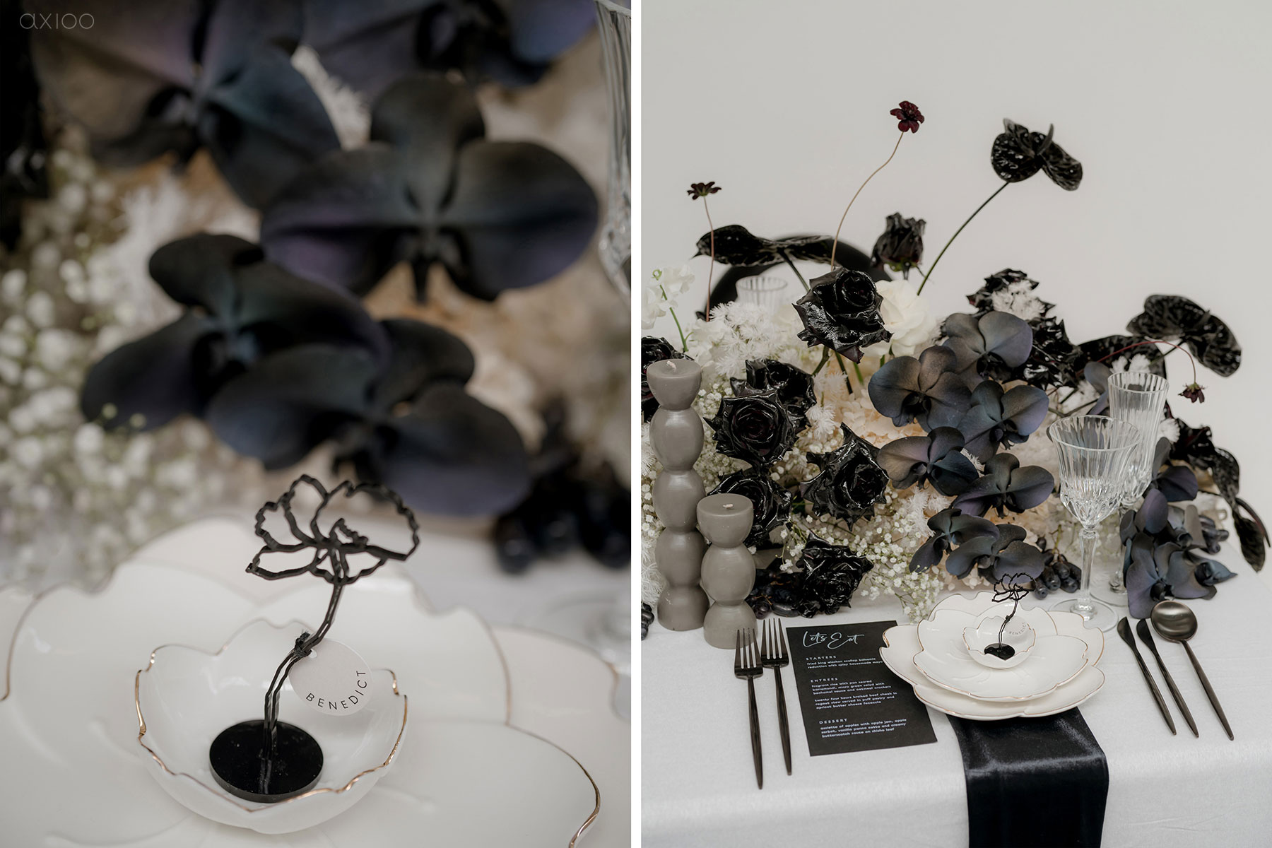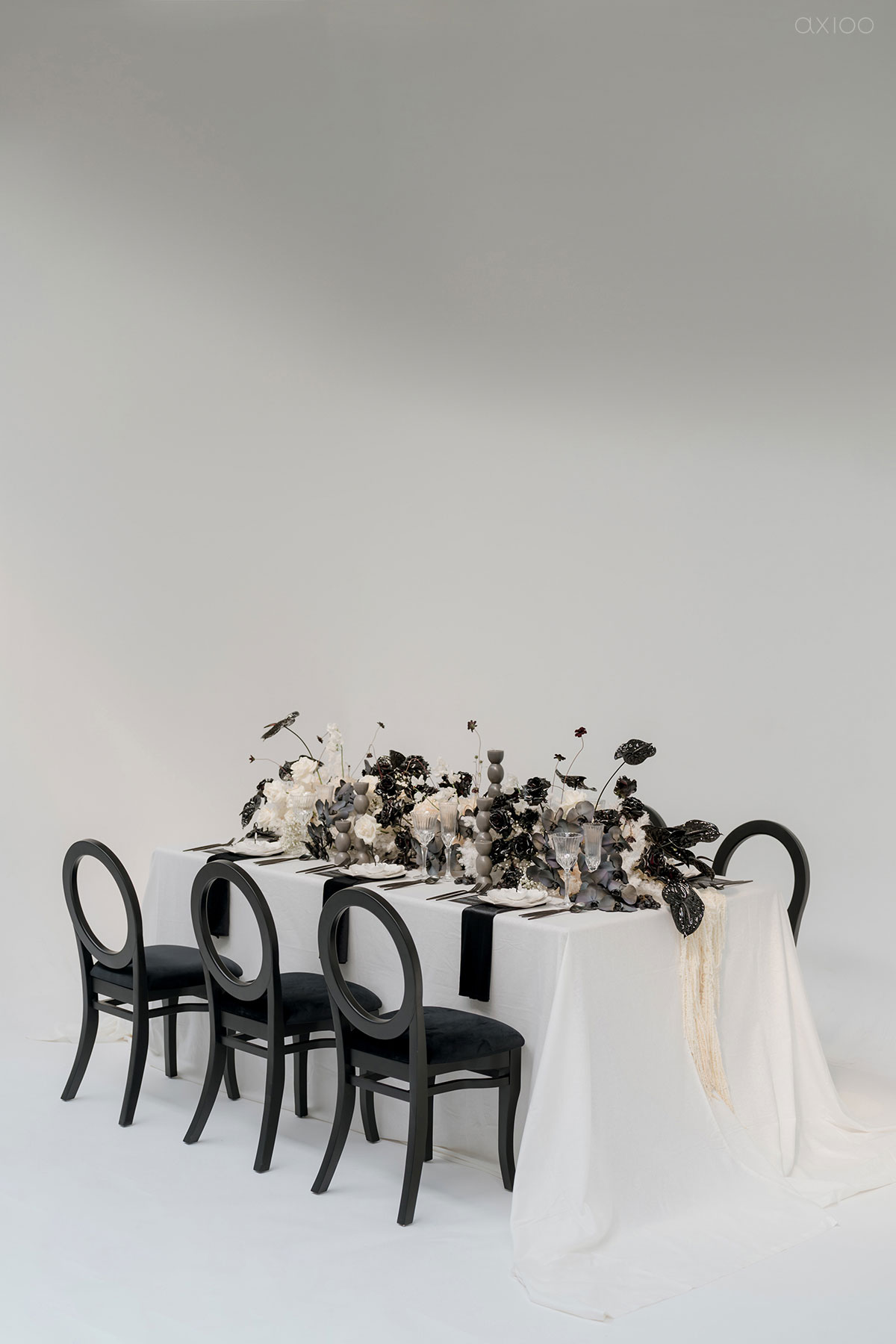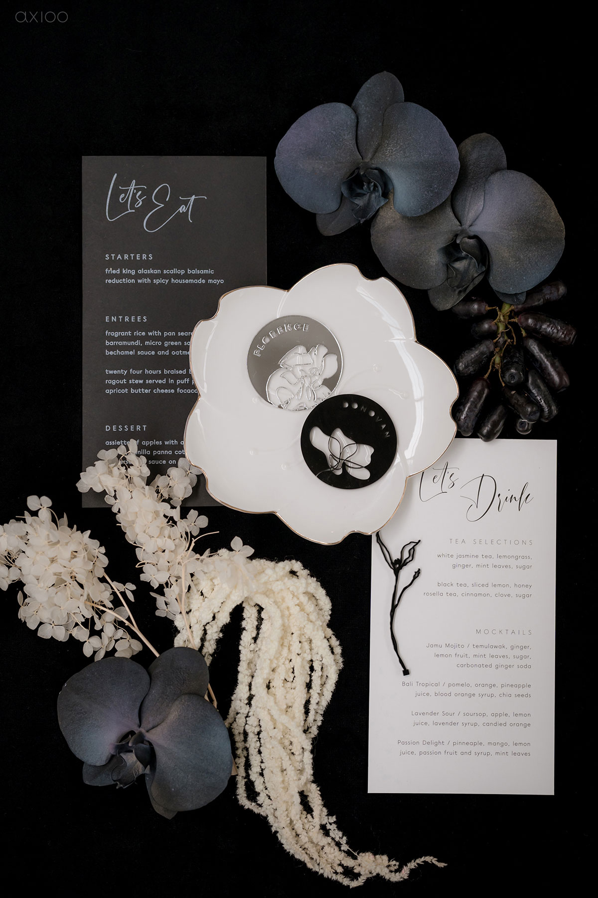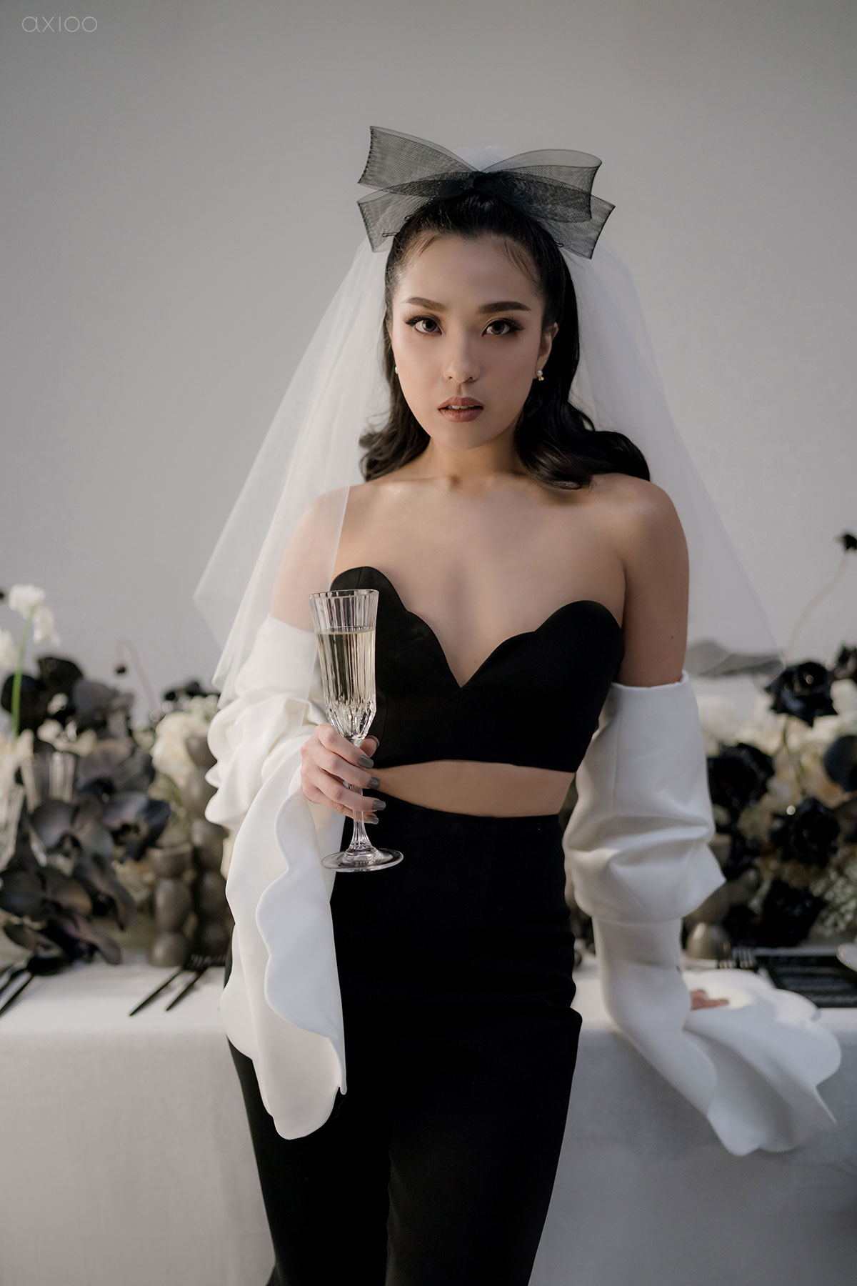 Special for the Bride Story Market, Axioo arranged a monochrome-styled shoot that showcased the elegant and minimalistic feel. Whether it’s white brick or a contrasting backdrop, the creative mixed and matched it with all-black vases, white lilies, and a plethora of other details that make our hearts skip a beat. Anyone who’s a fan of clean, sleek, crisp lines, and sharp contrast can trust the mood boards with us and let us make it come true!