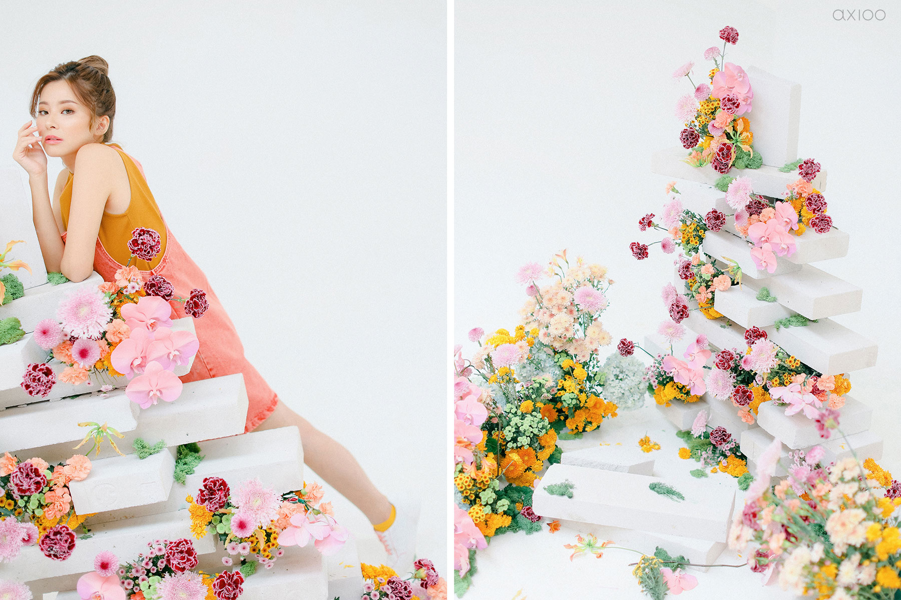 Jump into the next theme! Joe Setiawan executed the second-styled shots with his trademark vibrant-yet-romantic looks. Inspired by the Garden of Eden, a wonderland where blooming florals, luscious greenery, and all other pretty things co-exist. A fun collaboration with various vendors gave birth to these colorful and cheerful spring moods.